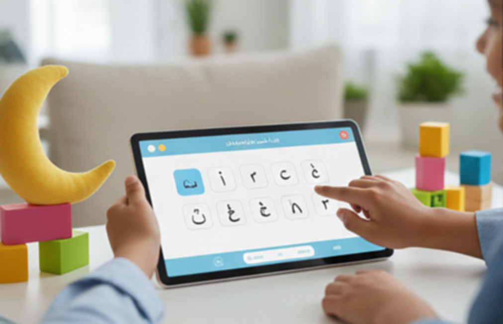 A phase based digital guide for introducing Arabic letters, symbols, and reading practice.